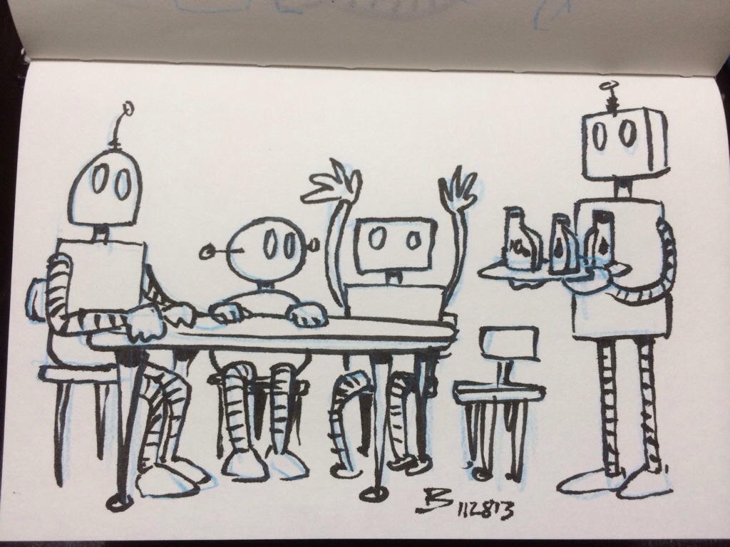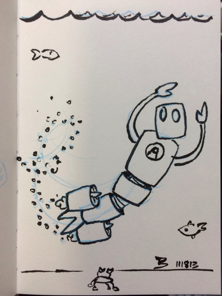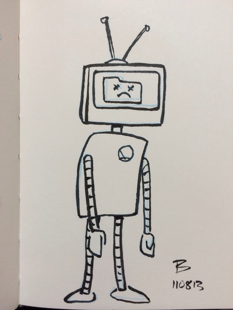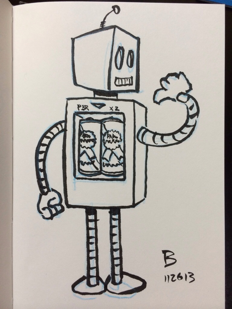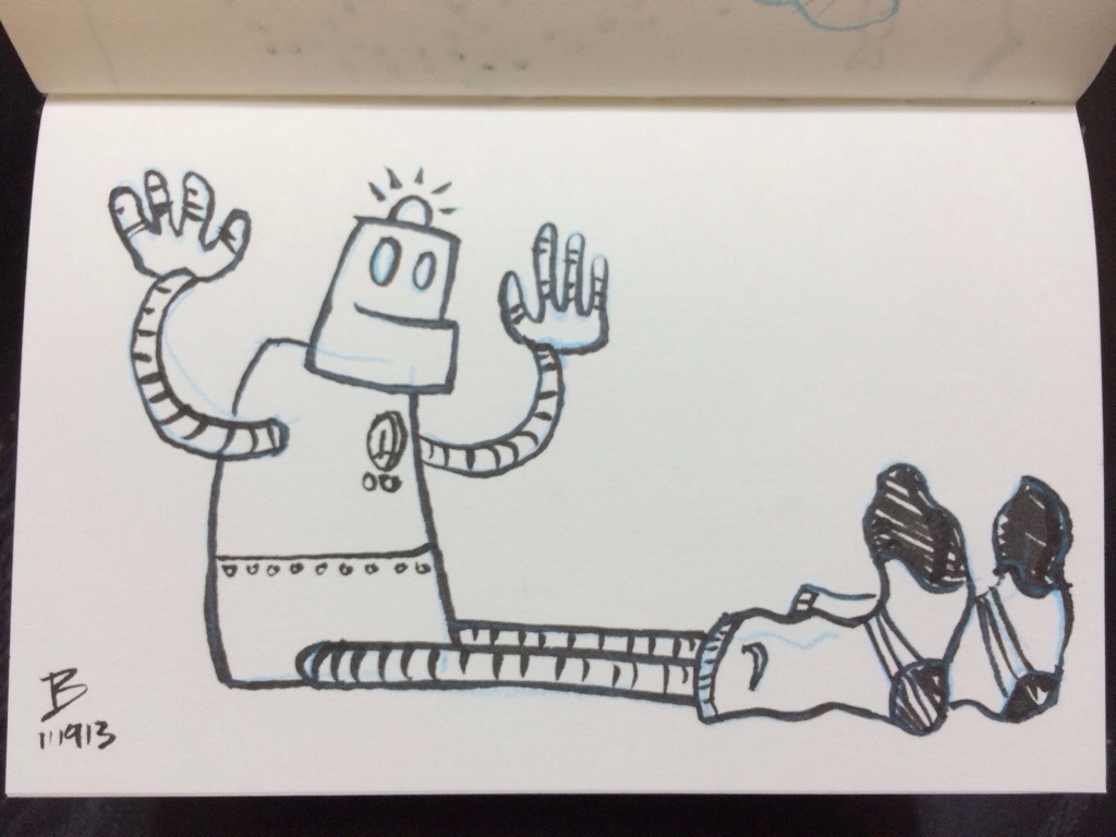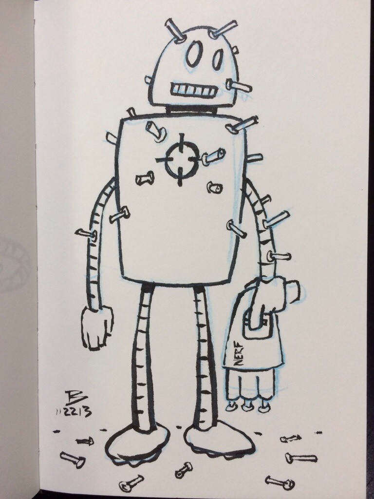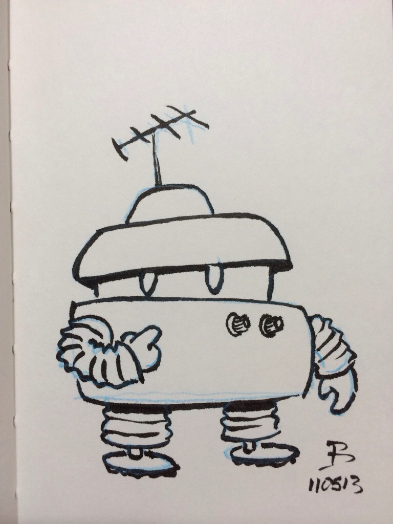 Here’s a fan of the doodle-bots displaying their haul next to a couple of robots– real and fictional! Don’t know about you, puny hu-man, but that boxy one’s got some angles!