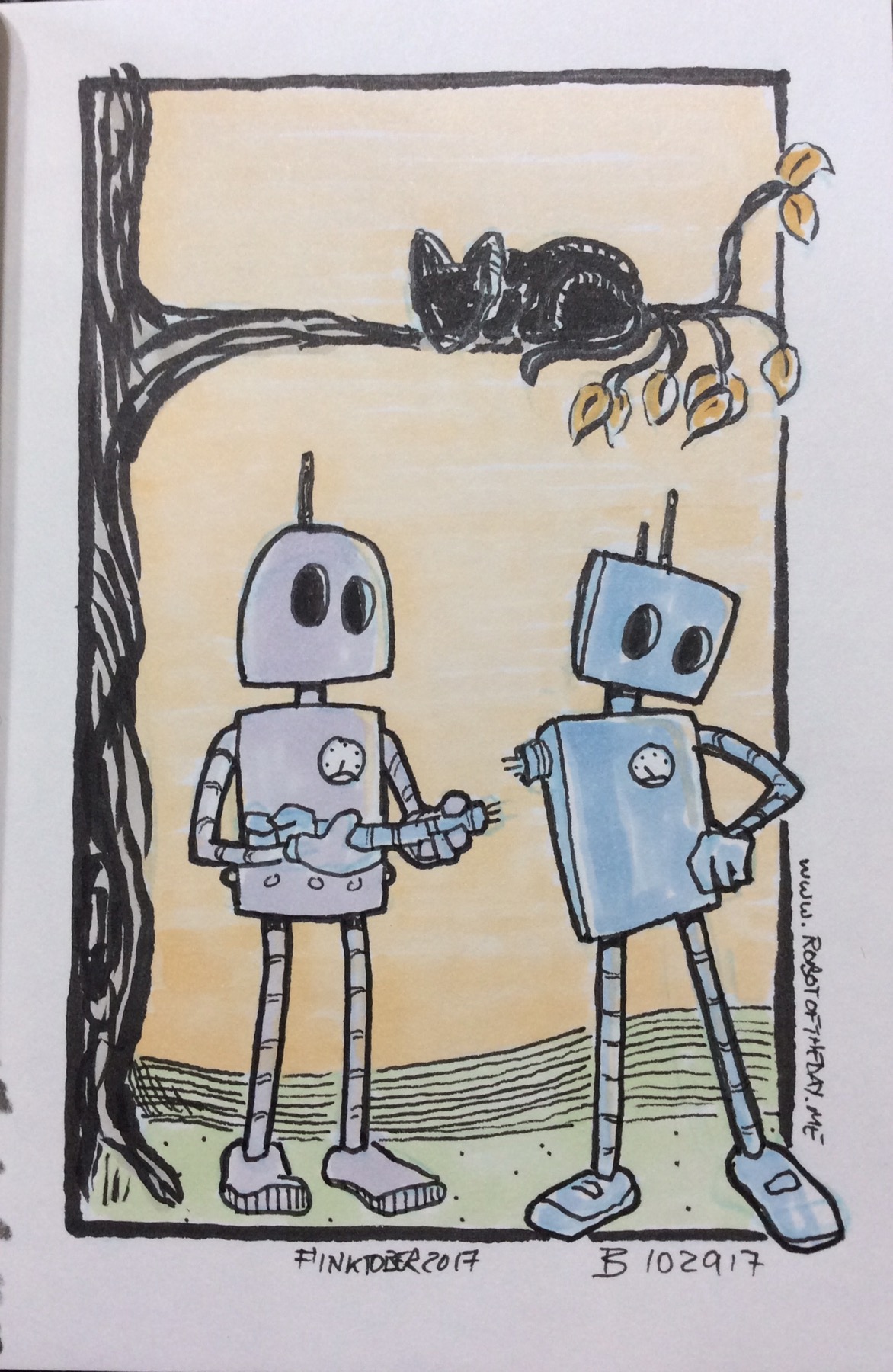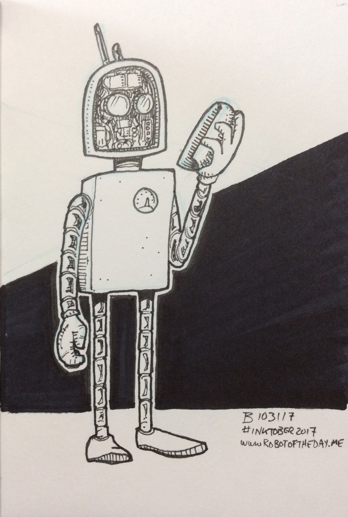 Inktober 2017 is complete. The robots have been taking a break since October 31 and are currently in “mode: execute standby.” They’re getting bored and will return soon!