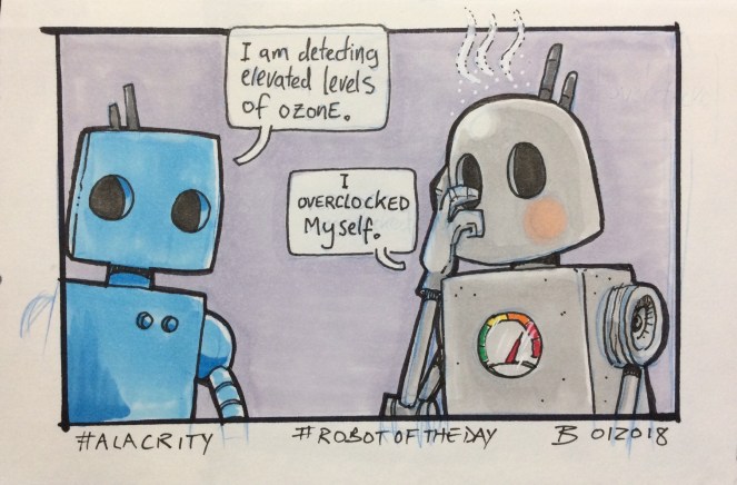 This post is the result of a “prompt word challenge” in which the robots solicited prompt words from viewers. They chose “alacrity.”