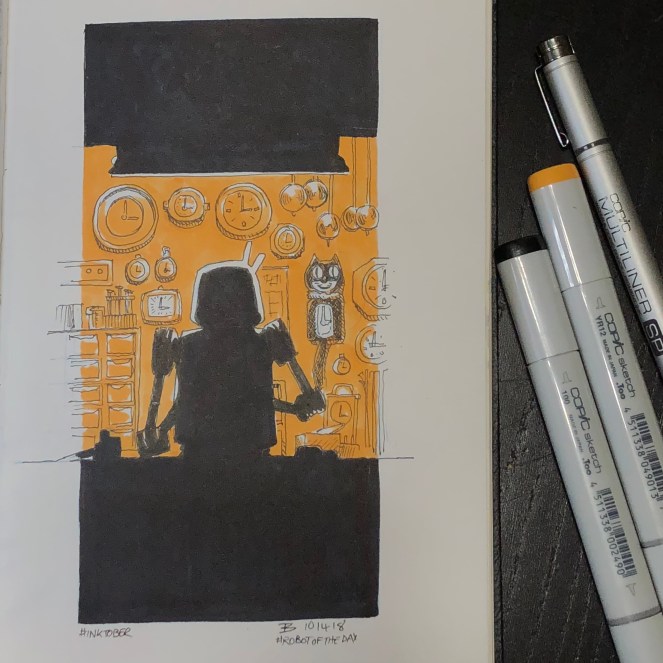 One robot in particular was obsessed with the concept of time. They asked to be called “CRONan.” CRONan kept a workstation populated with all manner of analog clocks— digital timepieces, it seemed, were not suitable. CRONan spent many hours finding, fixing, maintaining and adjusting the collection of clocks.