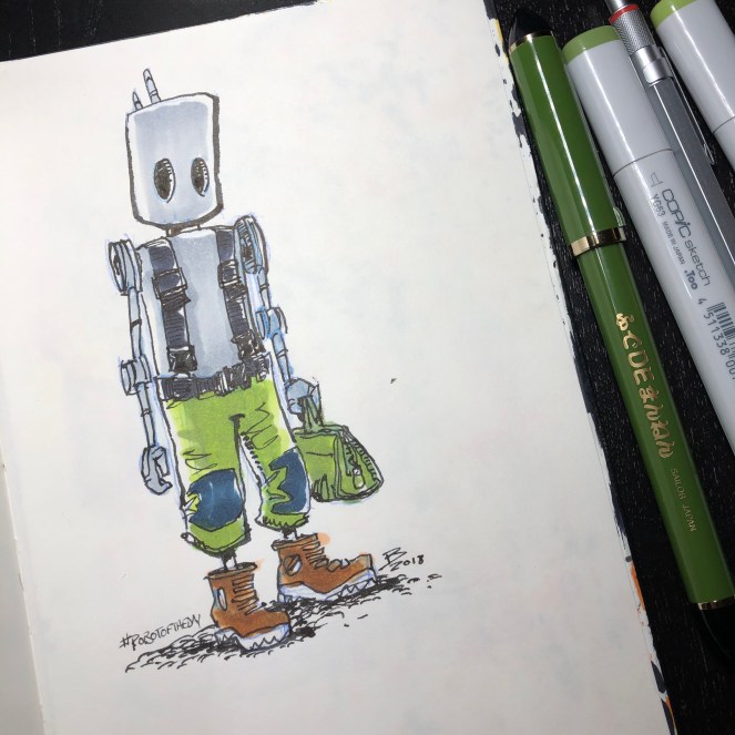 I can’t remember when the robots first started wearing pants, but it was out of a need for utility rather than fashion. Once they discovered that pants were highly effective at preventing gross contamination of their undercarriage they became widely accepted.