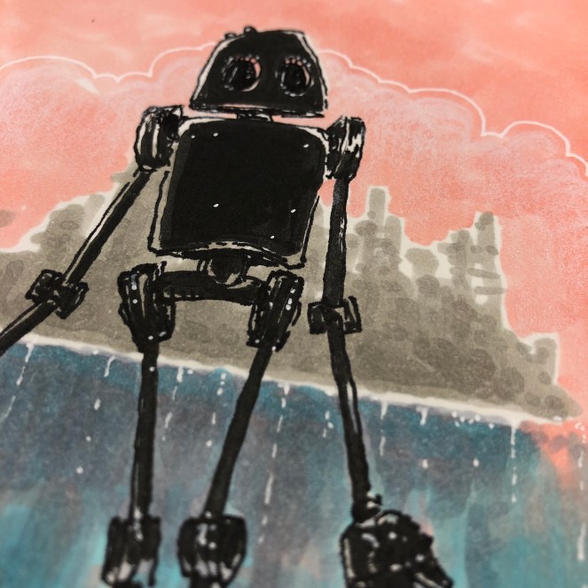The inner lives of the robots are complex and nuanced; this is multiplied by several orders of magnitude by their shared (networked?) dreaming (visions?). They seem to have no worries— reality, to them, is what they decide upon, individually and collectively.