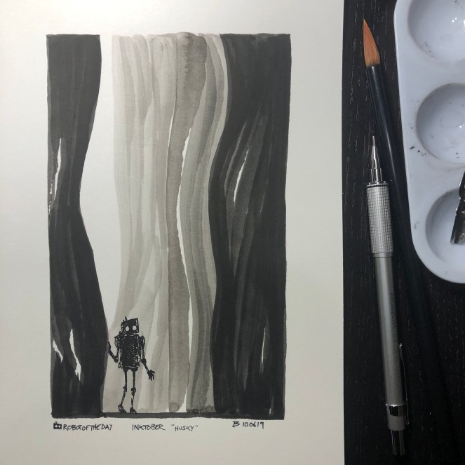 The wind rushed through the channel cut in the rock with a husky susurrus. The robot logged their measured steps, measuring the angles of each bend in the channel. Periodically they stopped to make notations on the map.