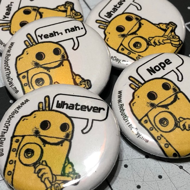 These buttons will be available at our next event, local retail outlet, and eventually our on-line store.
