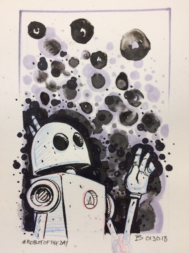 Another robot held up a floppy disk. “I have an ancient volume filled with incantations and digital magic!”