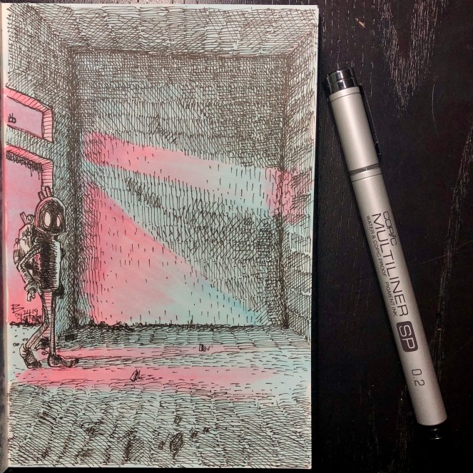 “I know your ways,” the robot said to me. “I know that you can not tolerate a state where you lack information.” Even so, the robot shared with me stories about ‘places I should not go.’ The robot continued: “There are places far from here; places without label, without map. They once must have been known, marked, and organized. Now there are nothing but blank sectors and noise. I circumnavigated one such area, attempting to add to the borders of mapped locations. Some of the topography was familiar but out of place. My attempts to build a map failed due to localized EMR causing errors while I was writing data…”