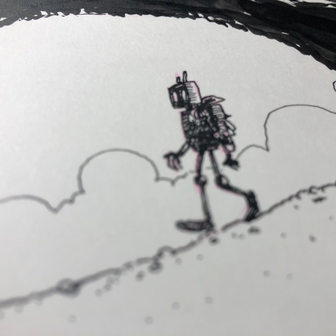 The regular swing of their legs measuring distance day by day, measuring the journey into the unknown with every stride, the robot made note of features and objects encountered, pushing back the borders of the Unknown Areas.