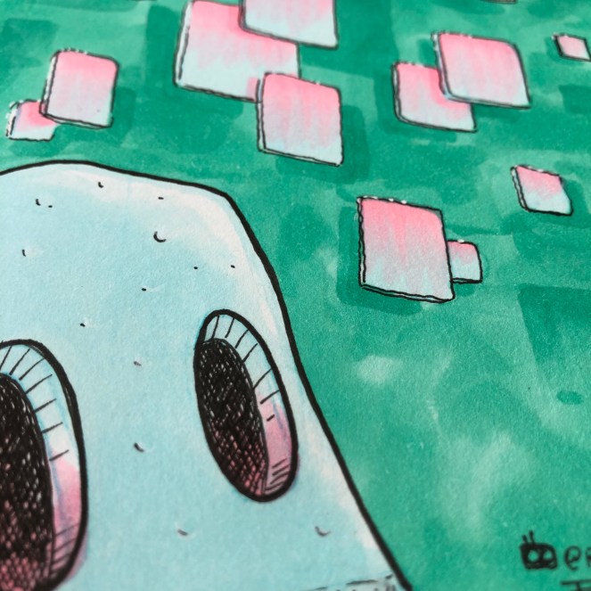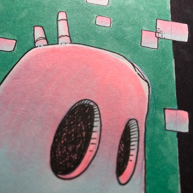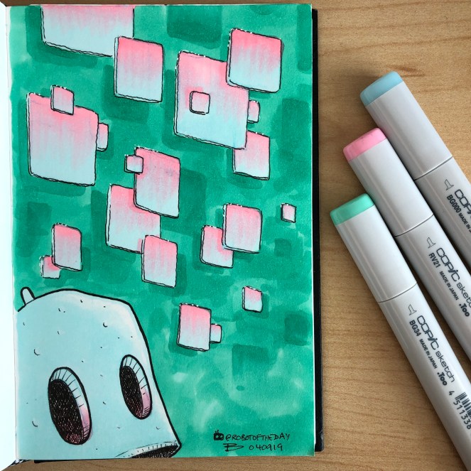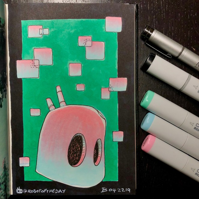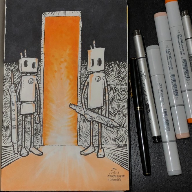 A storm darkened the sky early and forced the robot to take shelter in the derelict building over night. Before going to sleep mode, they spent some time exploring deeper into the structure, the lantern casting long shadows. The building was empty and devoid of anything of any interest— save for one wall. It was covered in strange, indecipherable markings and pictographs— the raw materials of legend and myth. The robot set their pack down and dig out a paper notebook and stylus. After recording some visual data they set about logging the find in the notebook— a failsafe storage mode. First the odd EMF spike and now this…