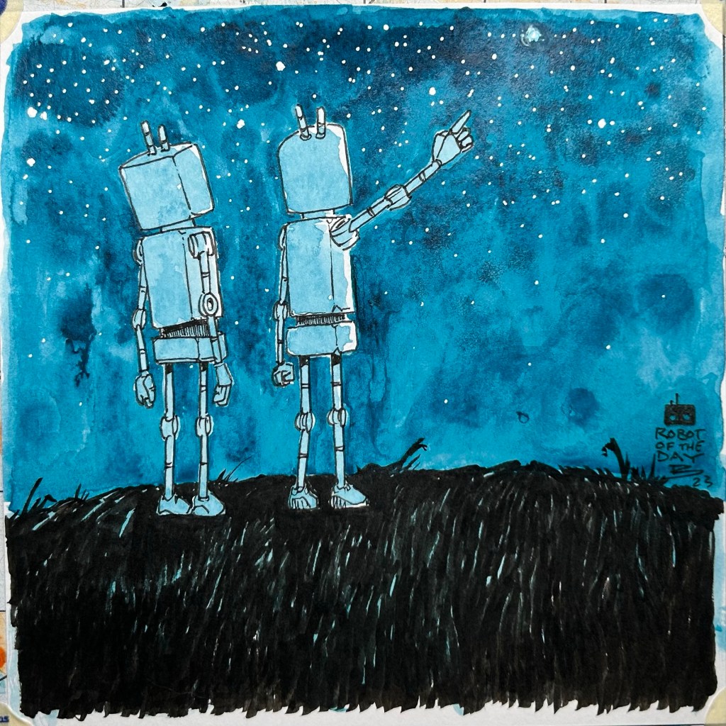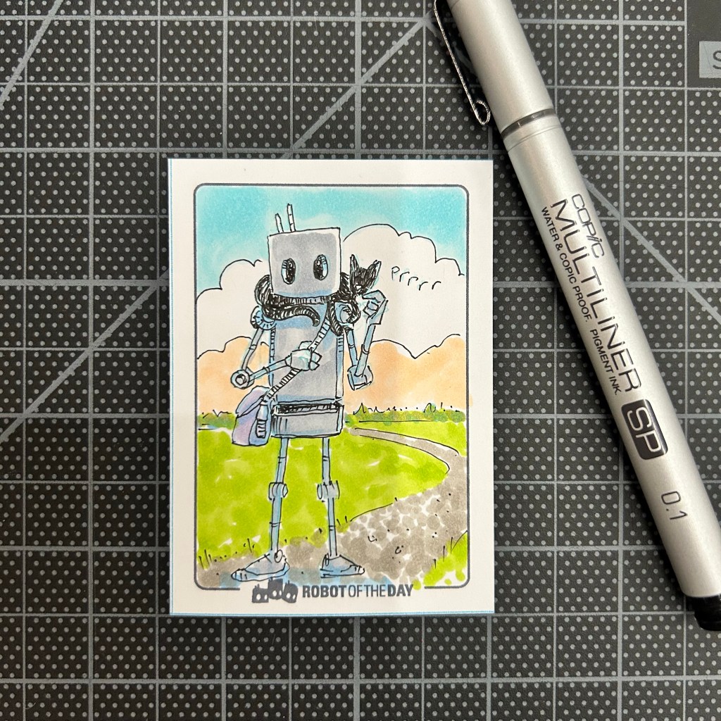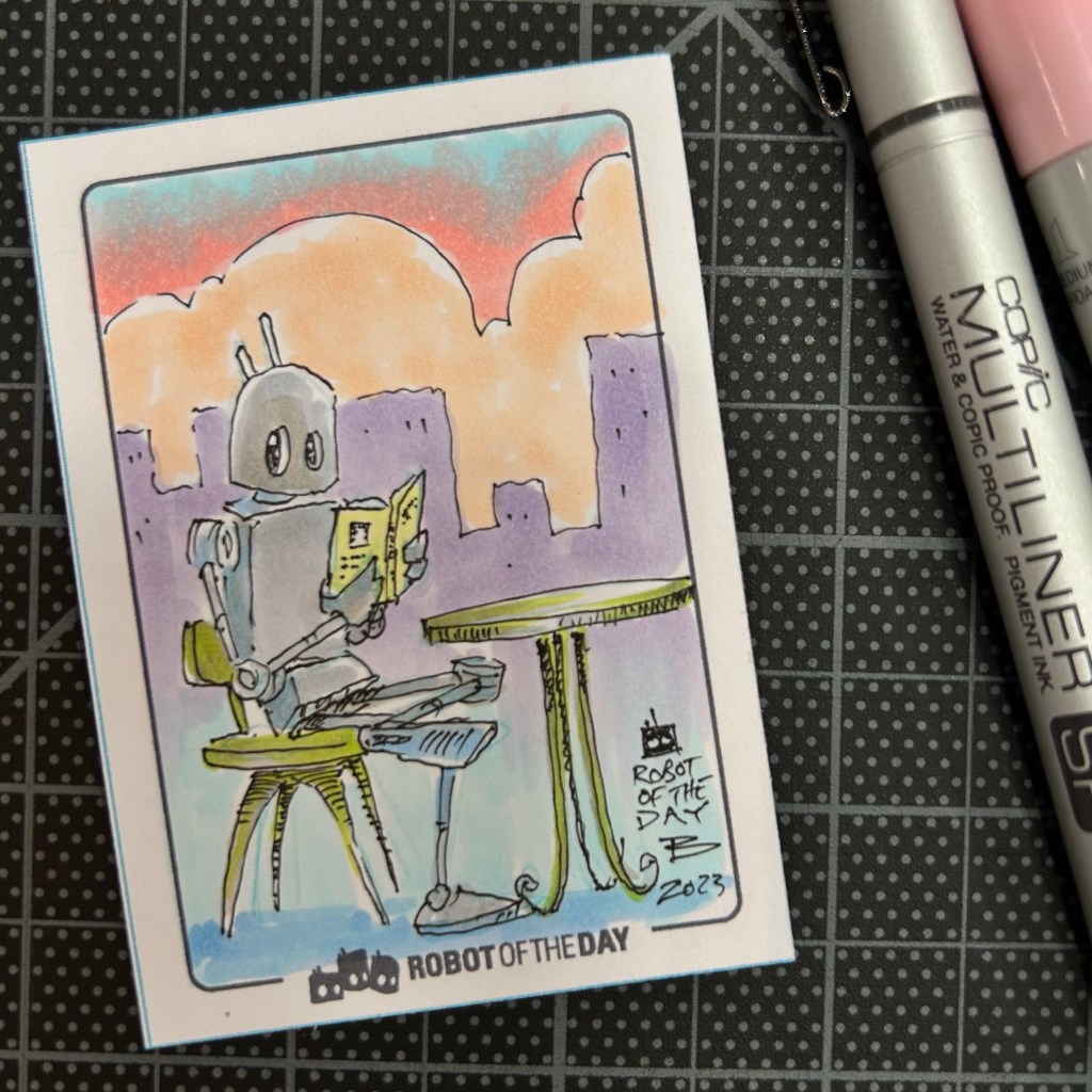 The snarkbot thanks you.We filled the few idle cycles with creating sketch cards like this citizen and their cat companion.Another sketch card… reflecting on the quiet momentsA sketch for a friend in their RotD notebook! (J-05 was our table number.)Packing up the robot! See you next year!
