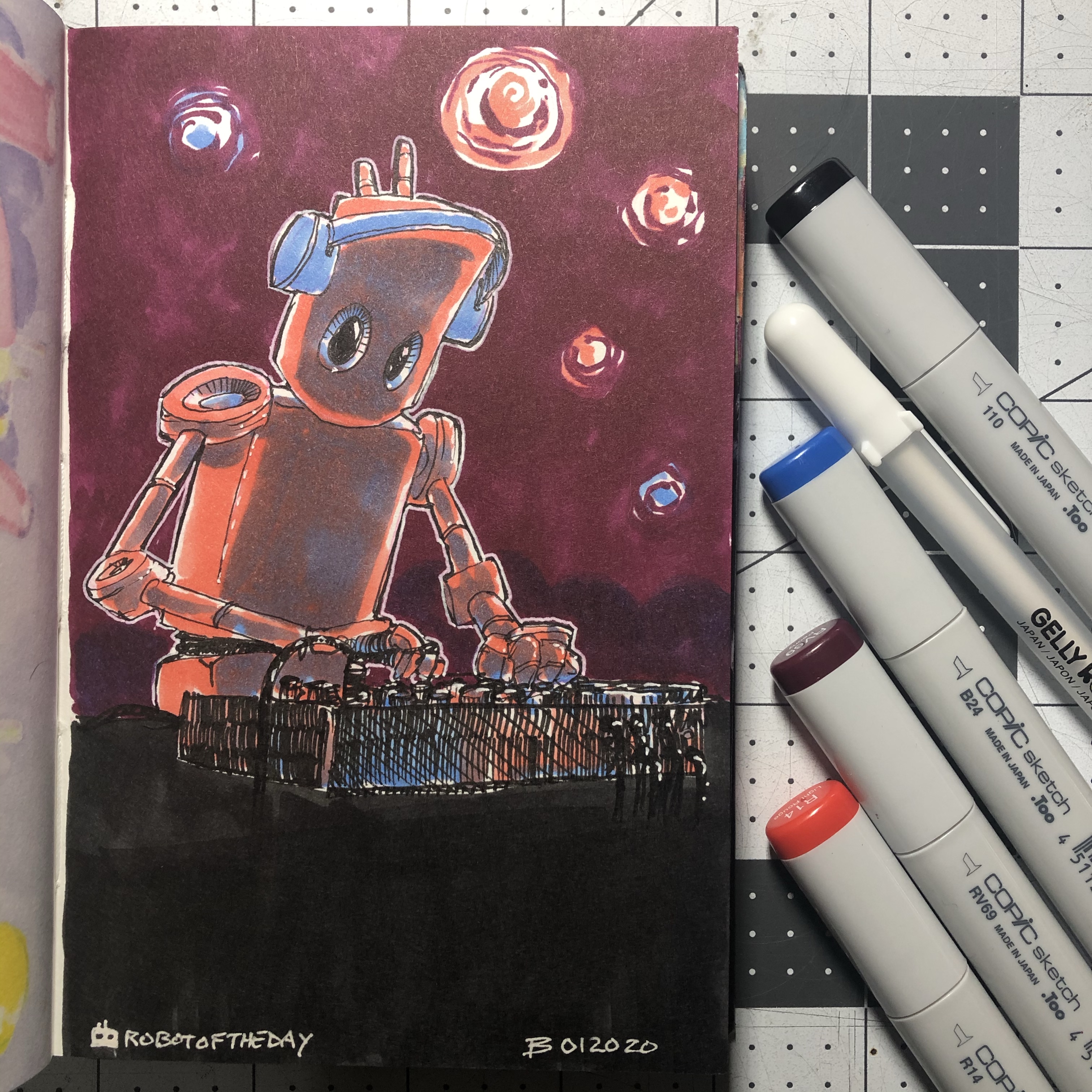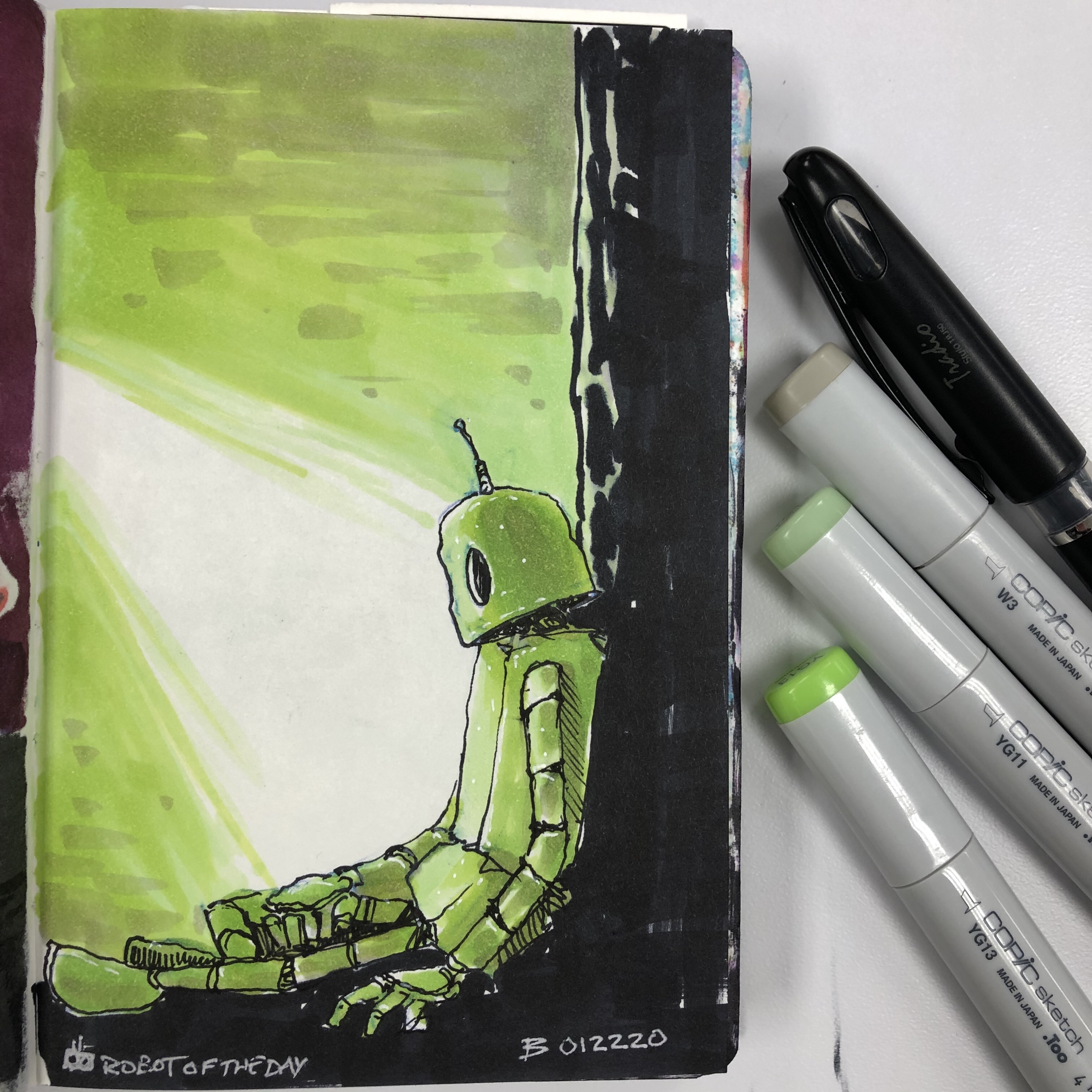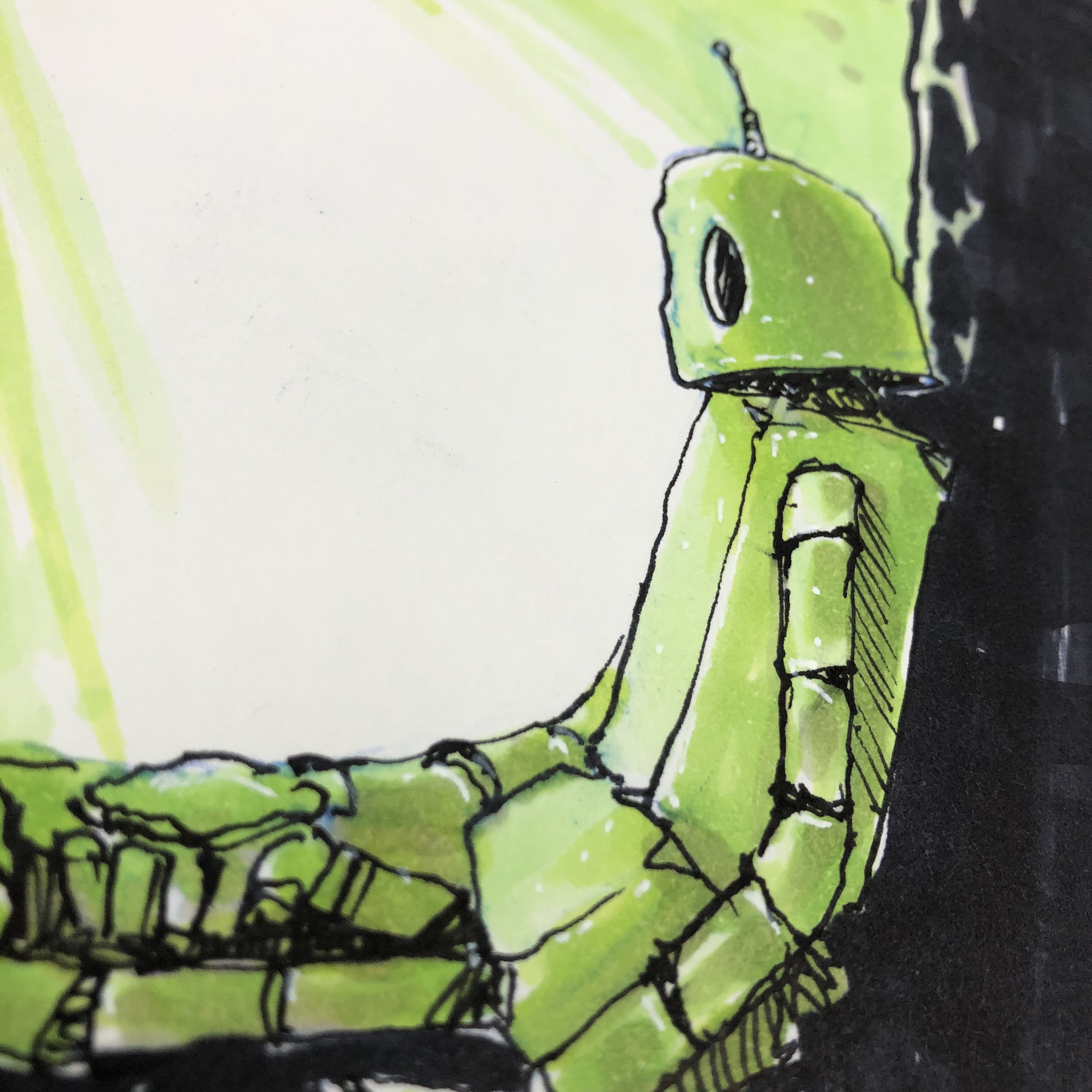 I snap my sketchbook closed and sweep my pens into my open satchel. I dig out a few more coins from my pocket and drop them on the tiny table, adding to the small pile I’ve already left there— a peace offering to the proprietor. I flip my bag around behind me and step out into the city lights and setting sun.