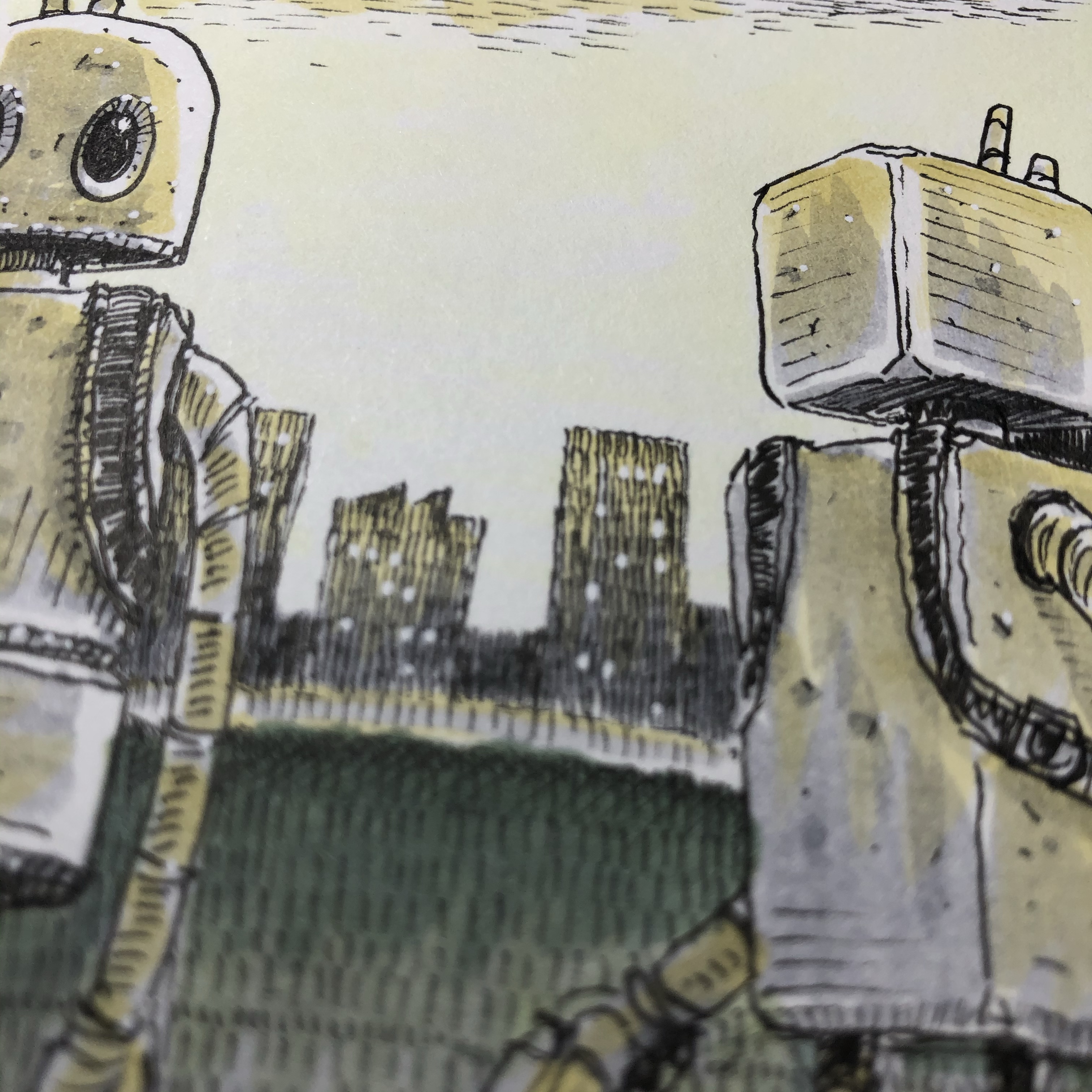 Hello friend. Save for obvious variations in gross surface anatomy, the robots might appear to be indistinguishable from each other. But each one is wonderfully unique, its life story told via scratches and dents on its housings.
