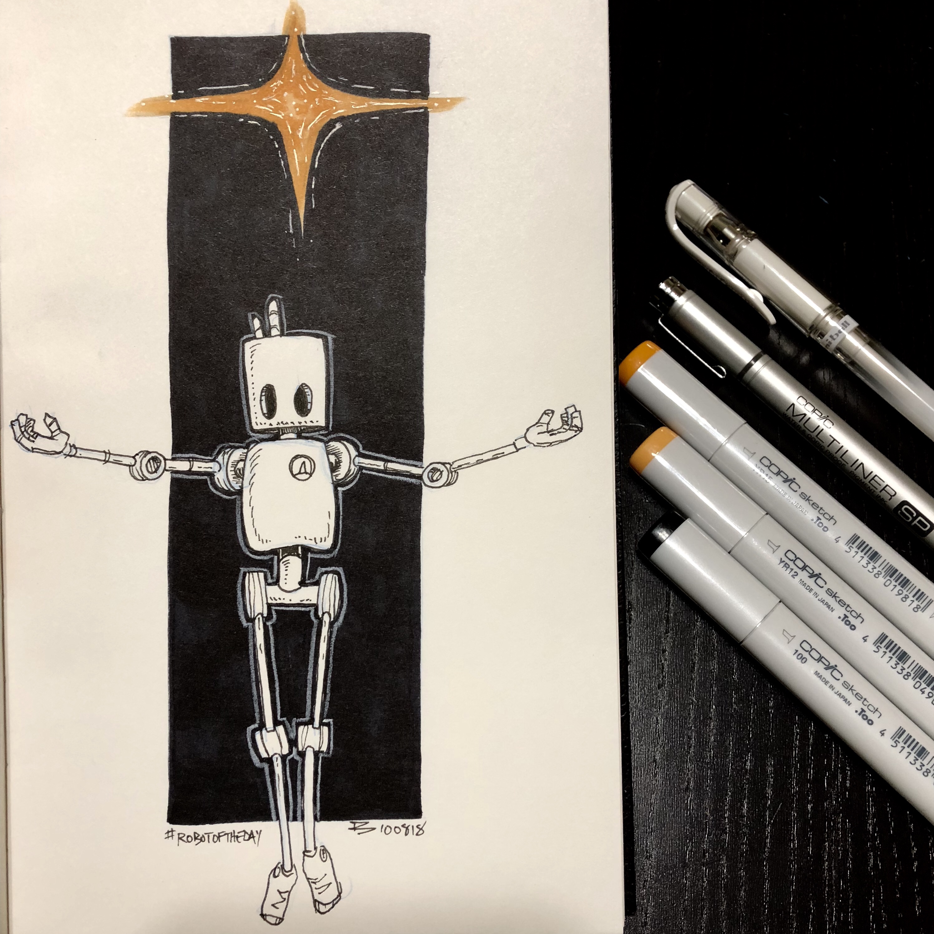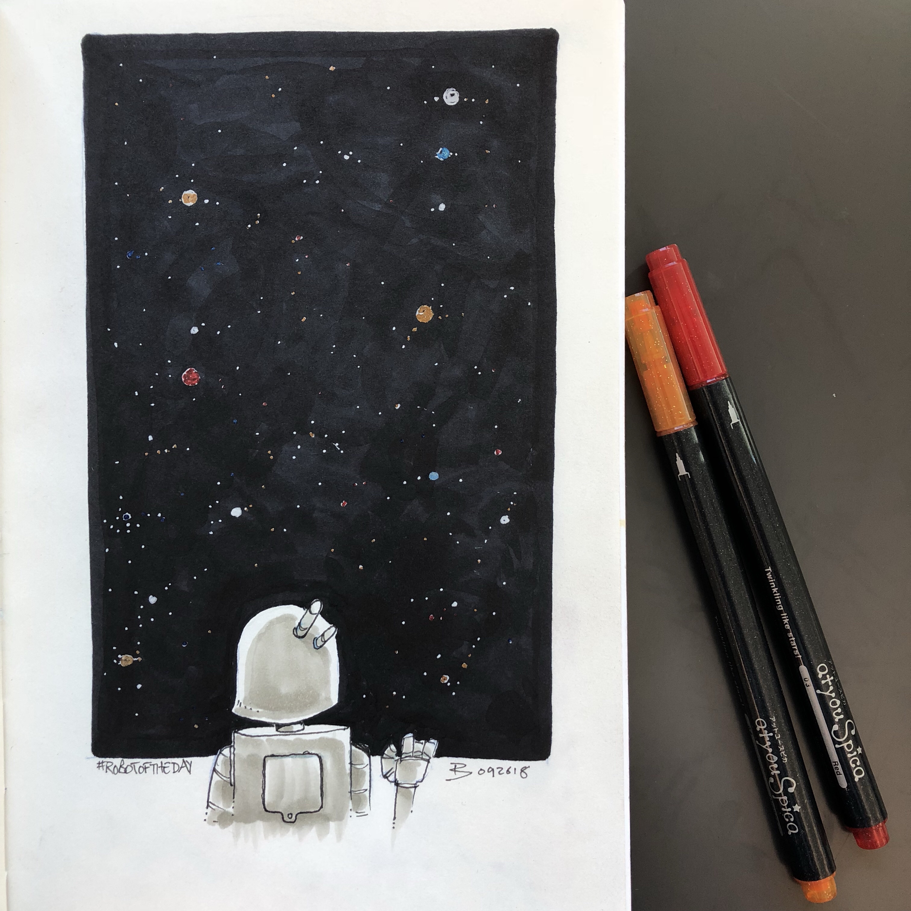 The robots are busy preparing their Inktober 2017 book for art markets and comic cons!