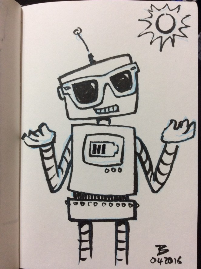 By the time the robot reached the valley floor, the sun was high in the sky, a swollen nuclear furnace that scorched the landscape with infrared radiation. CPU fans on high, the robot plodded on, resolute in its quest…