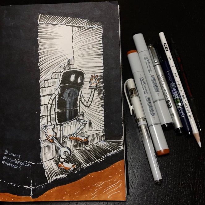 In an on-going quest to lower its duty cycle, 8er7 parked the truck in an out-of-the-way spot and descended to the ground to spend some time sampling the EMR and charging its batteries. After some time on the a cat approached. By way of introduction, 8er7 reached out an end effector to the cat, who sniffed at it tentatively, ultimately unimpressed with what the robot might have had to offer.