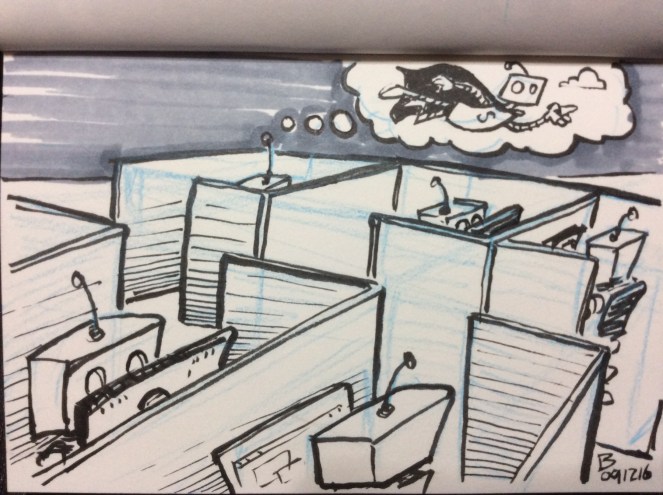 In an on-going quest to lower its duty cycle, 8er7 parked the truck in an out-of-the-way spot and descended to the ground to spend some time sampling the EMR and charging its batteries. After some time on the a cat approached. By way of introduction, 8er7 reached out an end effector to the cat, who sniffed at it tentatively, ultimately unimpressed with what the robot might have had to offer.